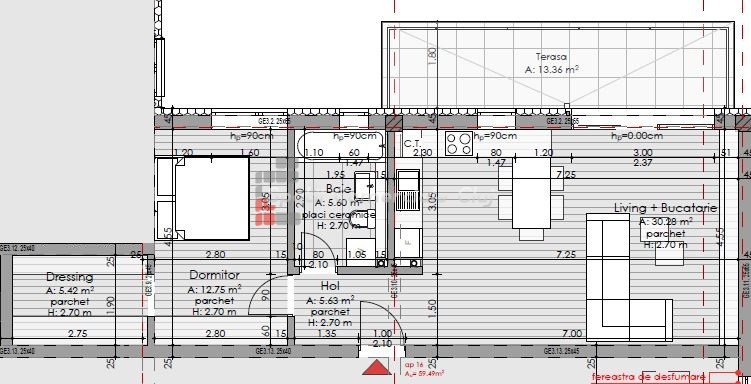 » 2 camere, 1 cuisine, 1 salle de bain, 56 m2