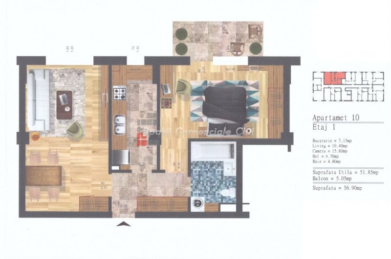 , 51.85m2 dans Floresti ID: P4250
