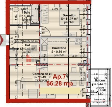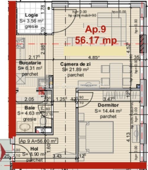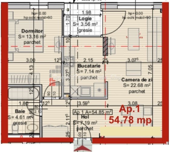 » 2 camere, 1 cuisine, 1 salle de bain, 54 m2