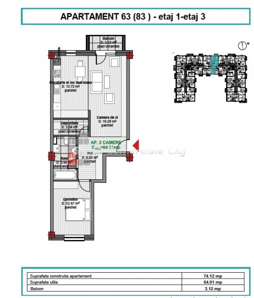 , 64.1m2 dans Floresti ID: P5354