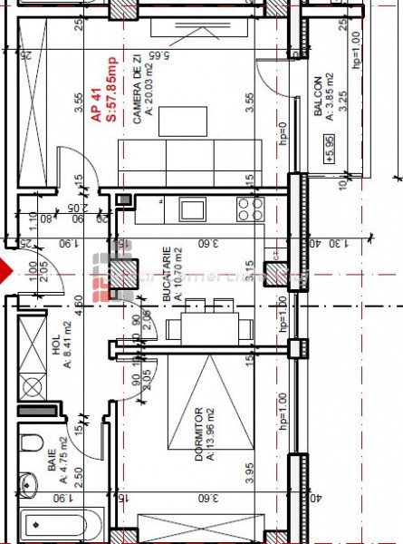 » 2 camere, 1 konyha, 1 fürdőszoba, 57 m2