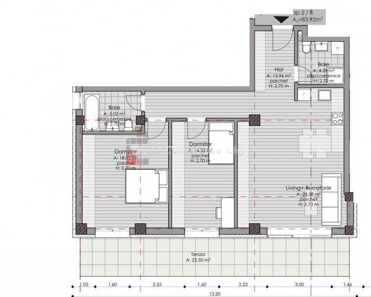 » 3 camere, 1 konyha, 2 Fürdők száma, 82 m2