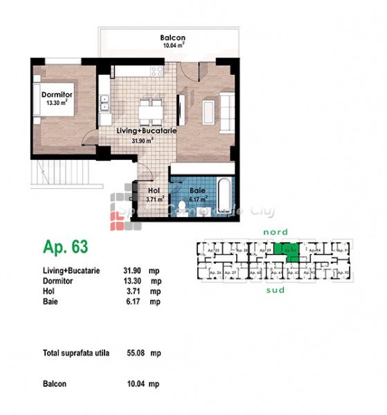 A Spatii Comerciale Cluj felhívja a figyelmét egy 2 szobás, erkélyes lakás megvásárlásának lehetőségére, ame...