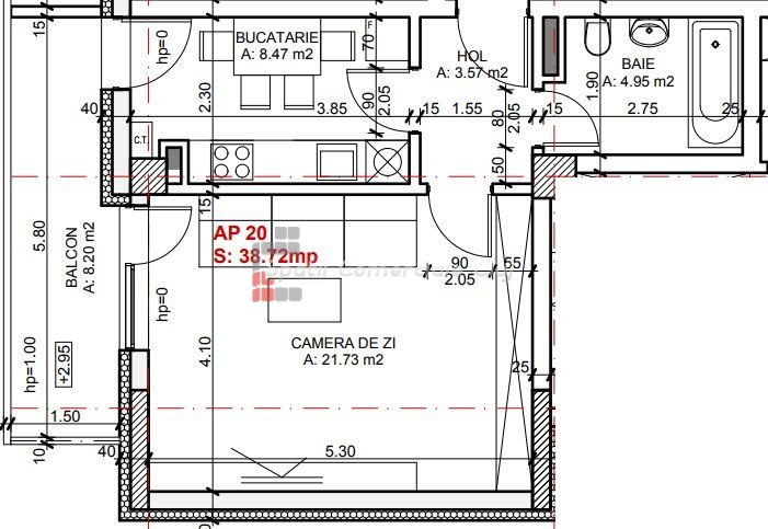 » 1 szoba, 1 konyha, 1 fürdőszoba, 21 m2