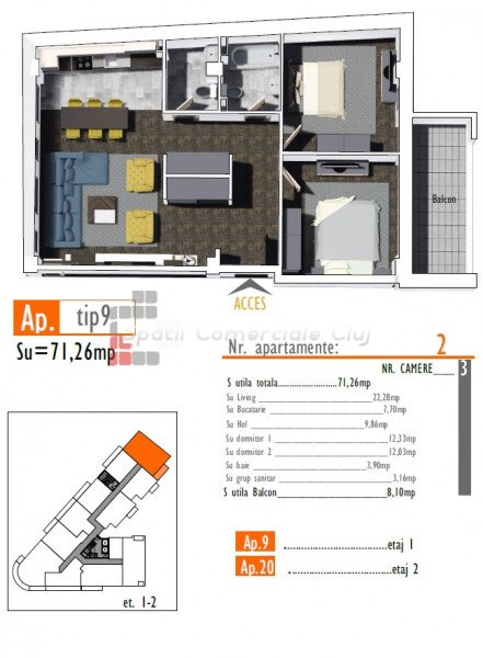 A Spatii Comerciale Cluj megvételre kínál egy különálló, 58 nm hasznos alapterületű lakást Florestiben, a Flor...