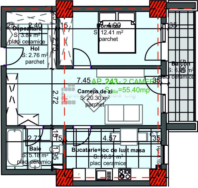 » 2 camere, 1 konyha, 1 fürdőszoba, 48 m2