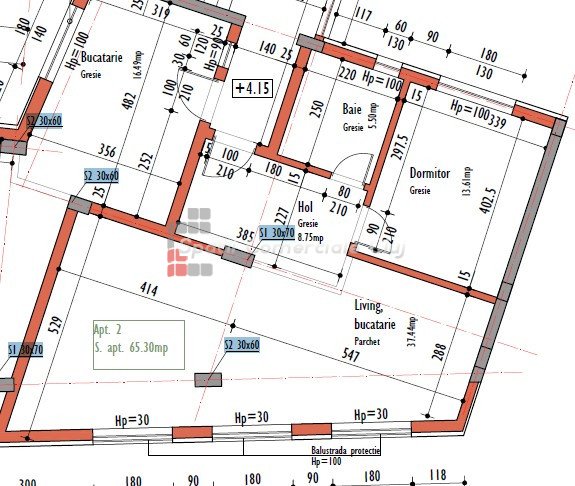 » 2 camere, 1 konyha, 1 fürdőszoba, 57 m2