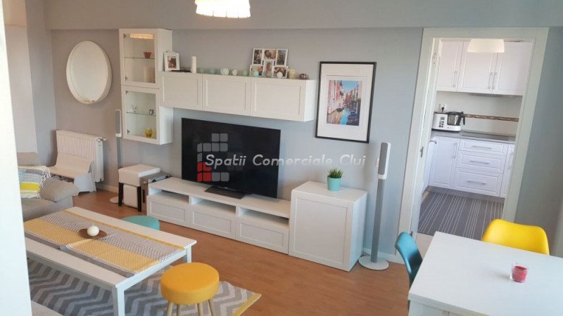 Kiadó egy modern, kétszobás lakás a Zorilor negyedben, egy négyszintes épület 4. emeletén. A lakás 56 négyzetm...
