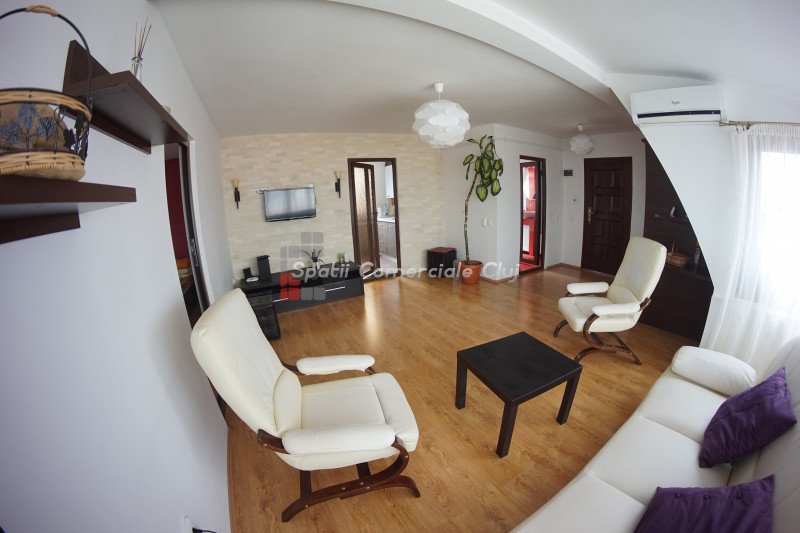 Kiadó egy modern, kétszobás lakás a Zorilor negyedben, egy négyszintes épület 4. emeletén. A lakás 56 négyzetm...
