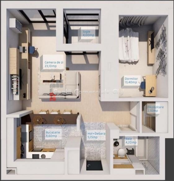 A Spatii Comerciale Cluj eladásra kínál egy 38,2 négyzetméter hasznos alapterületű lakást Floresti Florilor negy...