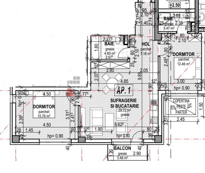 » 3 camere, 1 konyha, 1 fürdőszoba, 44 m2