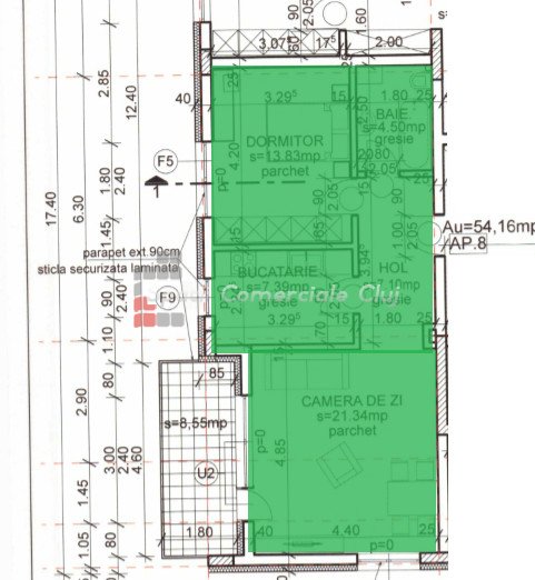 » 2 camere, 1 konyha, 1 fürdőszoba, 55.4 m2