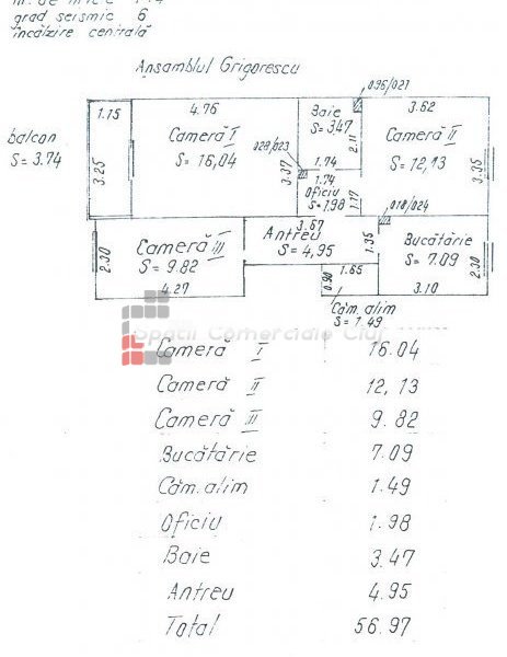 » 3 camere, 1 konyha, 1 fürdőszoba, 56 m2