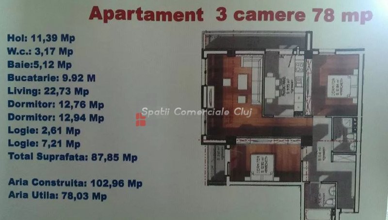 A Spatii Comerciale Cluj megvételre kínál egy különálló, 58 nm hasznos alapterületű lakást Florestiben, a Flor...