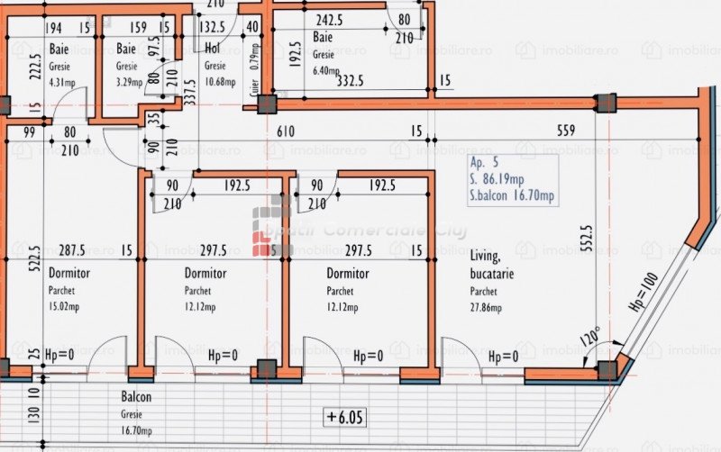 » 4 camere, 1 konyha, 1 fürdőszoba, 62 m2