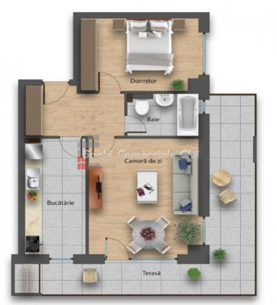 A Spatii Comerciale Cluj örömmel kínál eladásra egy kétszobás lakást Florestiben, a Florilor utcában. A lakás ...