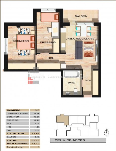 , 57.58m2 on Floresti ID: P20860