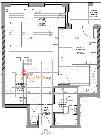 A Spatii Comerciale Cluj eladásra kínál egy 2 szobás, félig kész lakást, 52 nm hasznos alapterülettel, padlófű...