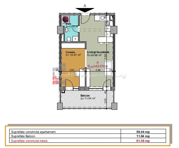 » 2 camere, 1 konyha, 1 fürdőszoba, 55.46 m2