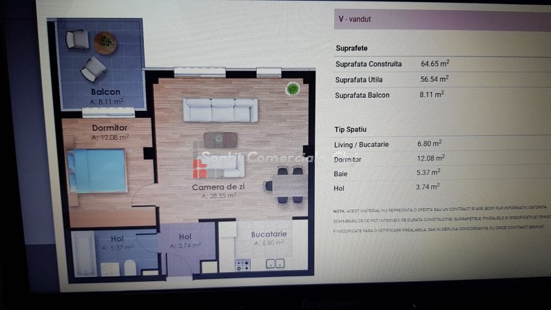» 2 camere, 1 konyha, 1 fürdőszoba, 56.8 m2