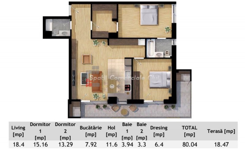 A Spatii Comerciale Cluj eladásra kínál egy tágas, 82 nm hasznos alapterületű lakást a Porii utcában.