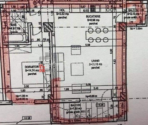 » 2 camere, 1 konyha, 1 fürdőszoba, 52 m2