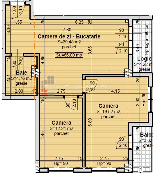 » 3 camere, 1 konyha, 1 fürdőszoba, 64 m2