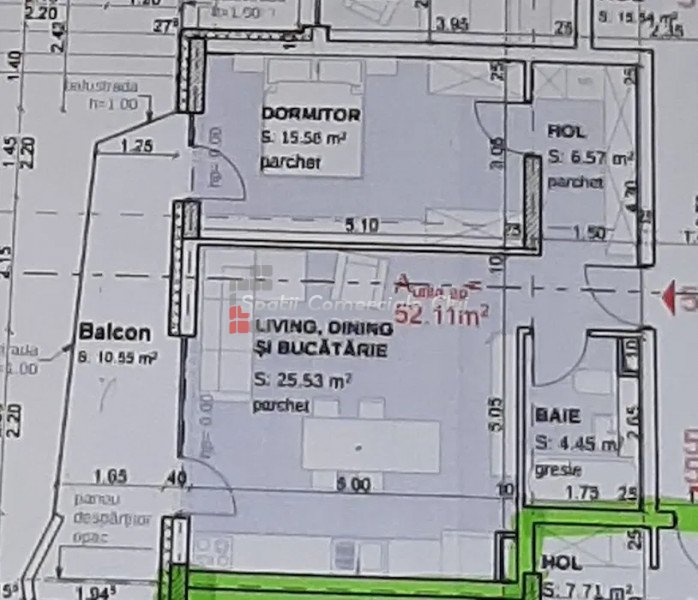 » 2 camere, 1 konyha, 1 fürdőszoba, 55.4 m2