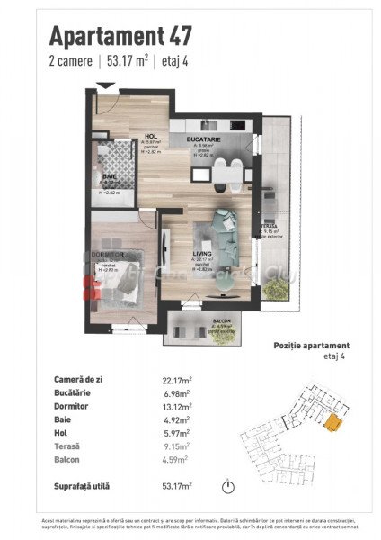 » 2 camere, 1 konyha, 1 fürdőszoba, 55.46 m2