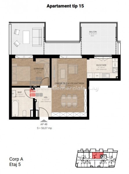 A Spatii Comerciale Cluj eladásra kínál egy 2 szobás, 63,35 négyzetméter hasznos alapterületű lakást a Someseni...