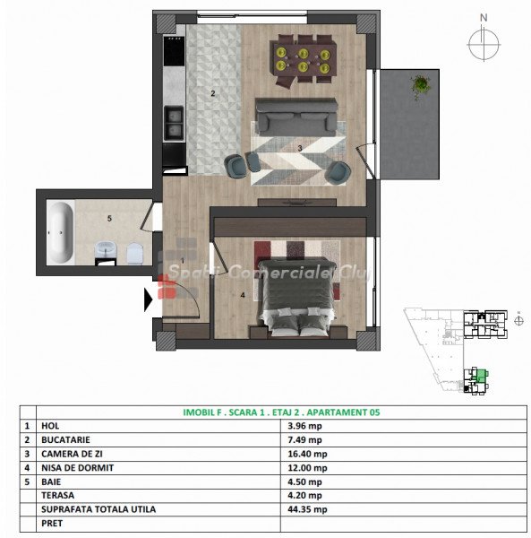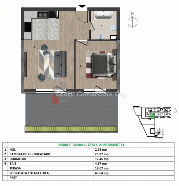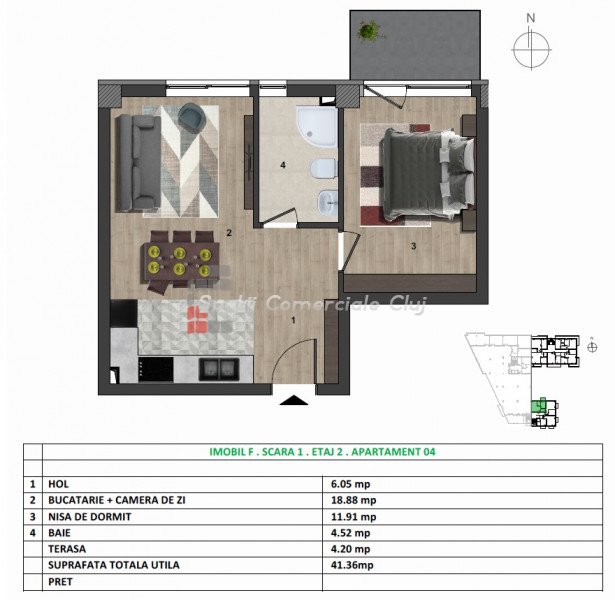 A Spatii Comerciale Cluj közvetít egy kétszobás, modern kivitelezésű lakás eladását, amely Floresti-ben, az Ero...