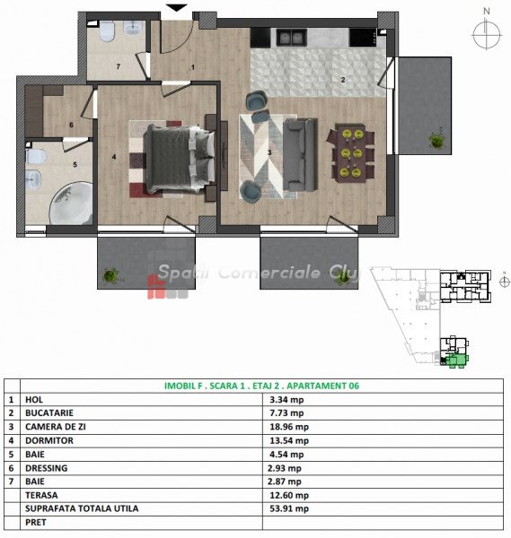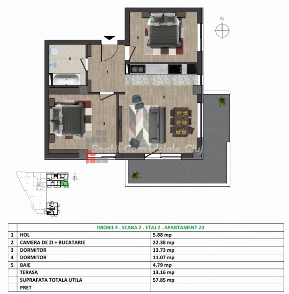 A Spatii Comerciale Cluj eladásra kínál egy ikerházas 2 szobás lakást, mely egy új épületben található, Maras...