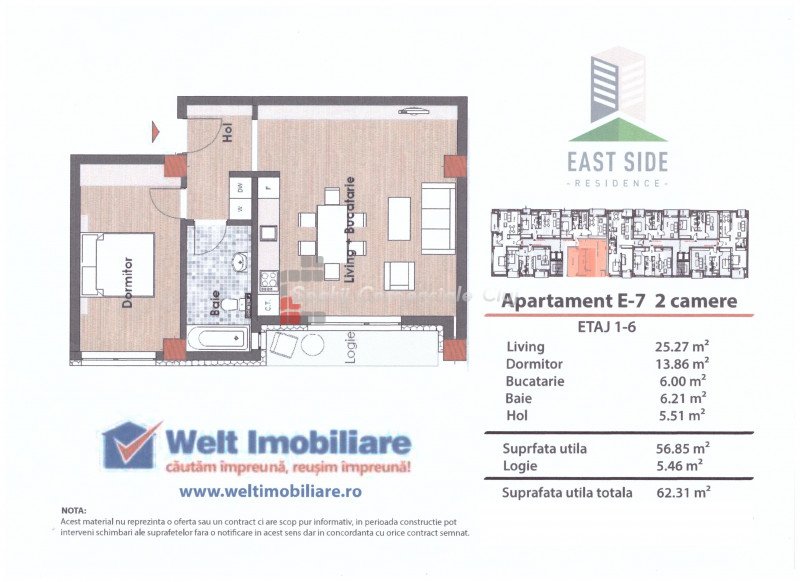 » 2 camere, 1 konyha, 1 fürdőszoba, 56.8 m2