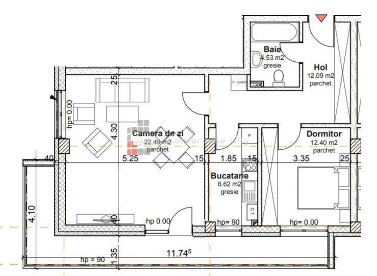 » 2 camere, 1 konyha, 1 fürdőszoba, 54.35 m2