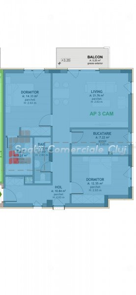 » 3 camere, 1 konyha, 1 fürdőszoba, 72 m2