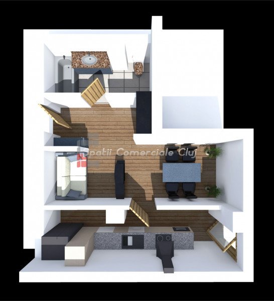 A Spatii Comerciale Cluj egy elegáns stúdiólakást kínál a Gruia negyedben.
