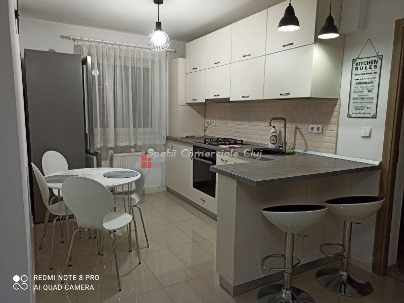 Kiadó egy modern, kétszobás lakás a Zorilor negyedben, egy négyszintes épület 4. emeletén. A lakás 56 négyzetm...