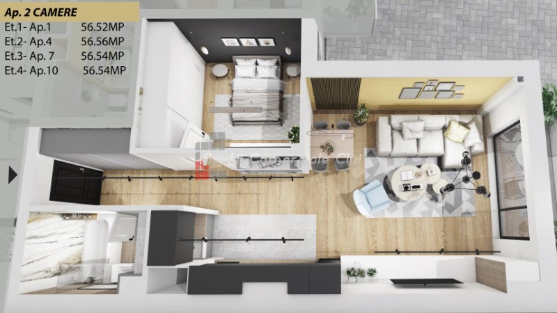 A Spatii Comerciale Cluj közvetít egy kétszobás, modern kivitelezésű lakás eladását, amely Floresti-ben, az Ero...