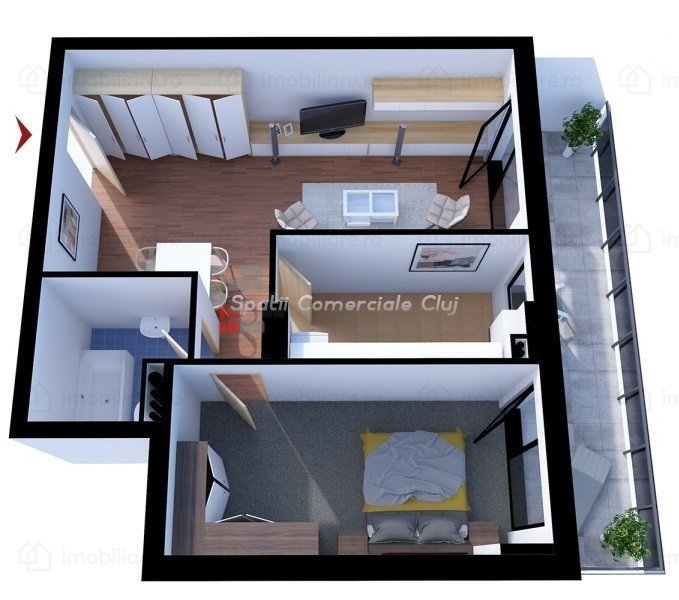 A Spatii Comerciale Cluj kiadó egy 2 szobás lakás a Buna Ziua negyedben, a Bonjour Residence komplexumban.