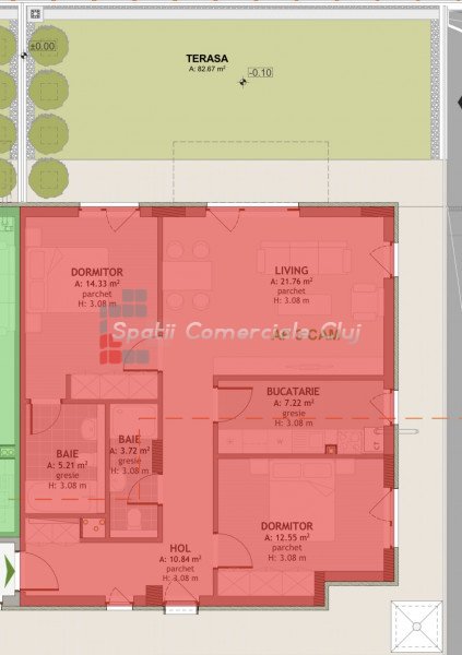 » 3 camere, 1 konyha, 1 fürdőszoba, 88.45 m2