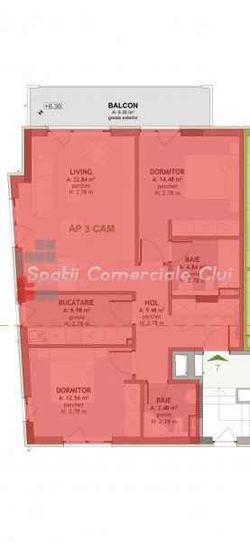 » 3 camere, 1 konyha, 2 Fürdők száma, 78 m2