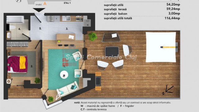 A Spatii Comerciale Cluj eladásra kínál egy 2 szobás lakást Floresti-ben.