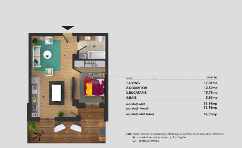 A Spatii Comerciale Cluj eladásra kínál egy 38,2 négyzetméter hasznos alapterületű lakást Floresti Florilor negy...
