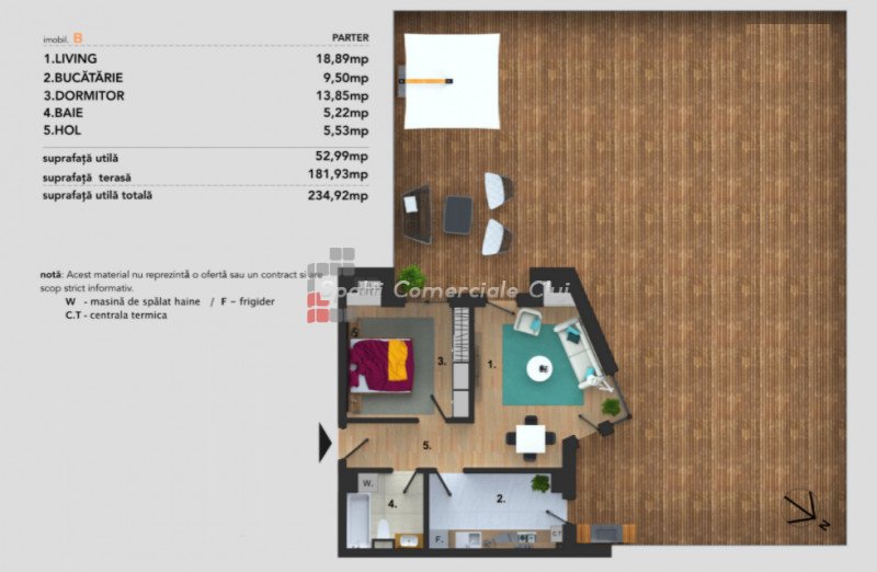 A Spatii Comerciale Cluj megvételre kínál egy elegáns lakást Florestiben, a Porii utcában.