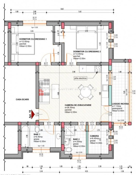 » 3 camere, 1 konyha, 1 fürdőszoba, 72 m2