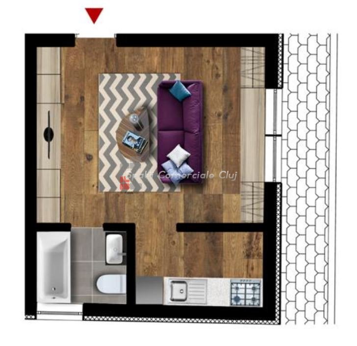 A Spatii Comerciale Cluj eladásra kínál egy garzonlakást az Iulius Mall közelében.