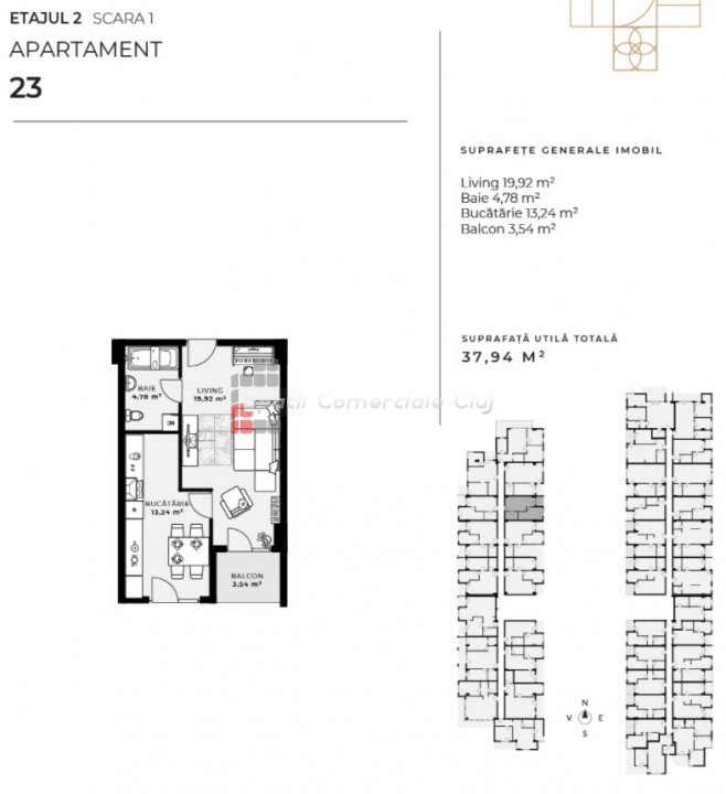 A Spatii Comerciale Cluj eladásra kínál egy egyszobás lakást a Dambul Rotund negyedben.