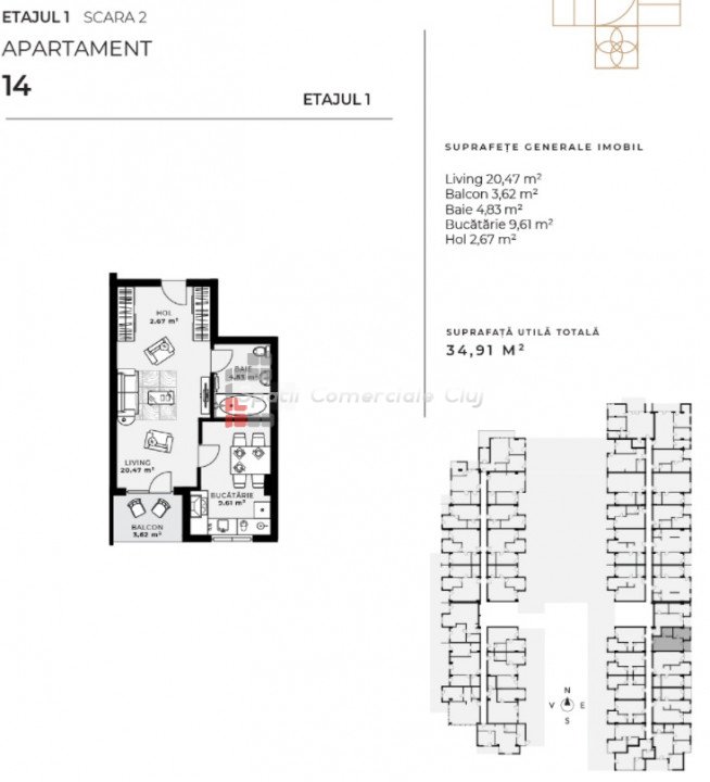 A Spatii Comerciale Cluj egy egyszobás lakást árul, Florestiben, a Muzeul Apei utcában, 5 percre a tömegközlekedé...