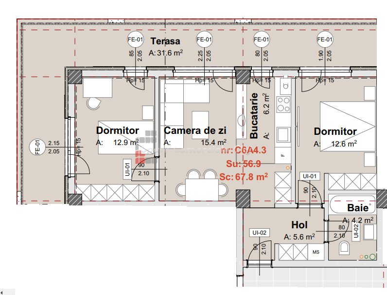 » 3 camere, 1 konyha, 1 fürdőszoba, 57 m2