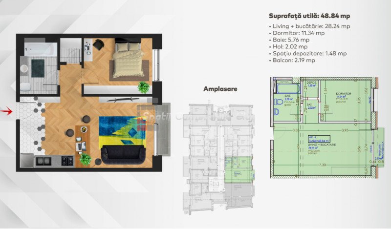 A Spatii Comerciale Cluj örömmel kínál Önnek eladásra egy 2 szobás lakást Baciuban.